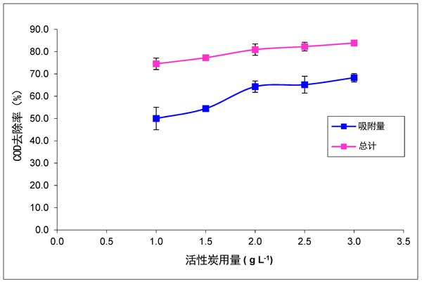 圖2:活性炭用量對(duì)COD去除的影響。