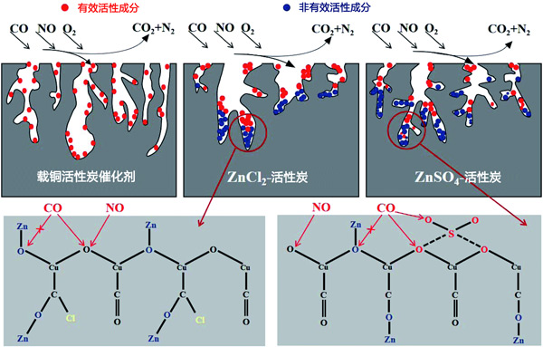 圖4:ZnCl2和ZnSO4對(duì)活性炭催化劑的失活機(jī)理。