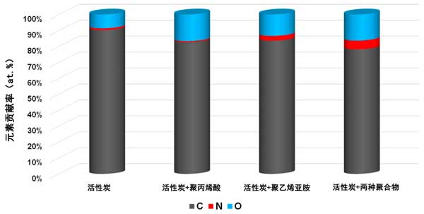 圖3:在25℃下吸附聚合物之前和之后活性炭表面的元素組成。