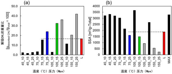圖2:(a)TG測(cè)量期間解吸的CHL的重量比。(b)浸漬過(guò)程后的SSA。