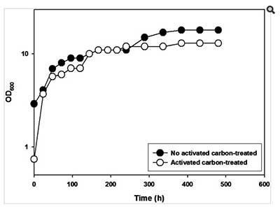 據(jù)報(bào)道,酸水解產(chǎn)物中的呋喃衍生物(糠醛和5-羥甲基糠醛)和酚類化合物是有毒的并且可以抑制生物乙醇生產(chǎn),在酸水解產(chǎn)物中發(fā)現(xiàn)約0.6-3.0g / l的水平。以前的報(bào)告回顧了酸性水解產(chǎn)物的治理。活性炭處理導(dǎo)致呋喃衍生物減少92%,5-羥甲基糠醛減少68%,酚類化合物總量減少約1.25-0.5克/ 升。通過(guò)活性炭處理從水解產(chǎn)物中去除有毒物質(zhì)是非?煽康摹