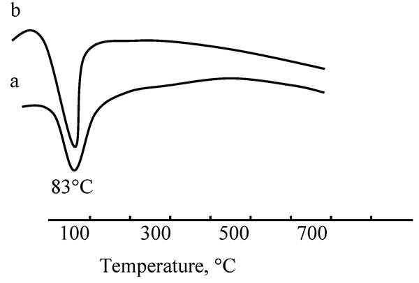 利用DTA技術(shù)研究了煅燒過程中催化劑的性質(zhì)變化。圖1顯示了煅燒和干燥活性炭載體的DTA曲線。兩個(gè)樣品在83℃附近只有一個(gè)吸熱峰。該峰對(duì)吸附水的解吸有貢獻(xiàn)?紤]到活性炭是具有極高容量和高吸附速率的優(yōu)異吸附劑的事實(shí),甚至在樣品干燥或煅燒之后峰值出現(xiàn)也就不足為奇了。兩種樣品的DTA曲線沒有明顯差異,表明煅燒對(duì)載體的熱性質(zhì)基本上沒有影響。