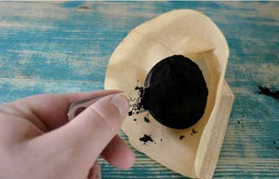 這一步是可選的,但如果你想要的話,你可以添加幾滴精油到過濾器的外部,讓你的鞋子附魔上你喜歡的氣味。并且你會發(fā)現(xiàn)活性炭會吸收一些精油氣味,但不是全部?Х冗^濾紙傾向于從制作的咖啡渣中吸收油,同時讓水通過,這對我們來說是比較適合的。讓精油放在過濾器的外部,而臭味和鞋子的水分通過過濾器吸收到活性炭粉中。