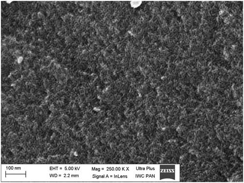 采用檸檬酸應(yīng)用合成方法,通過軟模板法獲得活性炭 。在實(shí)驗(yàn)的低溫(-196℃)氮吸附-解吸等溫線的基礎(chǔ)上確定了表征所研究活性炭的介孔結(jié)構(gòu)的基本標(biāo)準(zhǔn)參數(shù)。對于獲得的活性炭圖像,使用掃描電子顯微鏡(SEM),發(fā)現(xiàn)活性炭材料具有有序的,均勻的多孔結(jié)構(gòu),中孔尺寸約6nm(圖1)。