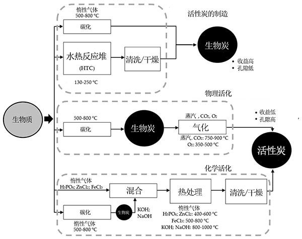 圖2.來自生物質(zhì)的活性炭制造。