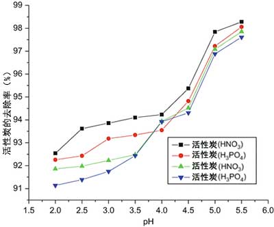 圖4:pH對活性炭去除百分比的影響。
