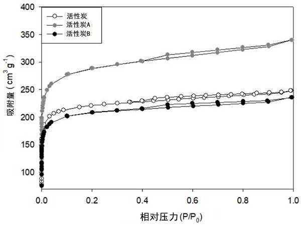 圖1:活性炭的氮吸附等溫線(xiàn)。