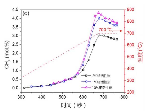 圖2:在碳熱還原過程中產(chǎn)生的CH4(mol.%)的分布。