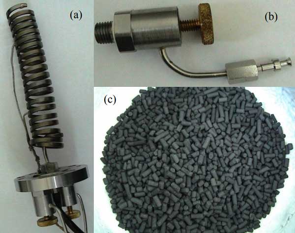 我們研究了一種氮?dú)饣钚蕴课匠氐膯渭?jí)原型,該原型用于驅(qū)動(dòng)低溫冷卻器。壓縮機(jī)的一些主要特性取決于所需的低溫冷卻器性能參數(shù),尤其是工作壓力和氮?dú)饬髁。設(shè)計(jì)構(gòu)建實(shí)驗(yàn)吸附池,一些組件如圖1所示。在上面研究了氮在所選活性炭上的吸附,并且已經(jīng)提出改進(jìn)的Freundlich模型來(lái)計(jì)算作為溫度和壓力的函數(shù)的吸附氮的量。該模型用作計(jì)算吸附式壓縮機(jī)循環(huán)參數(shù)的基礎(chǔ)。吸附劑是商用顆粒狀活性炭。顆粒直徑為3毫米,以煤為基礎(chǔ),由高溫蒸汽活化,具有1000的高比表面積。