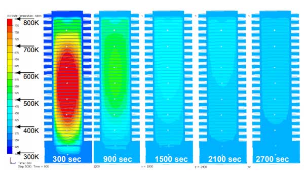 圖3:僅具有自然對(duì)流的冷卻階段的數(shù)值傳熱分析。