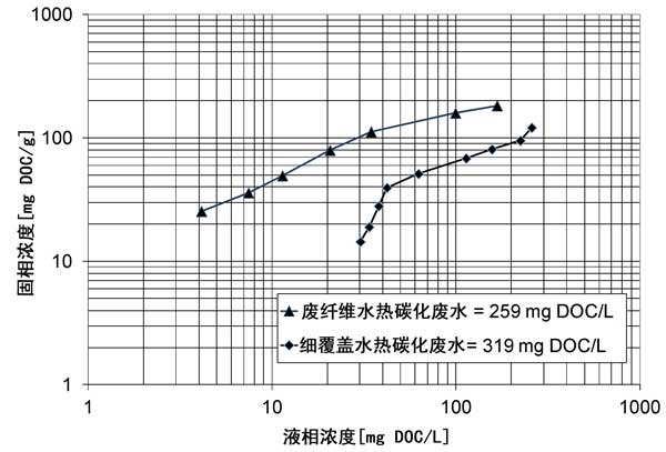 圖1:預(yù)處理過(guò)的水熱碳化廢纖維和細(xì)覆蓋處理水的總體等溫線的比較。