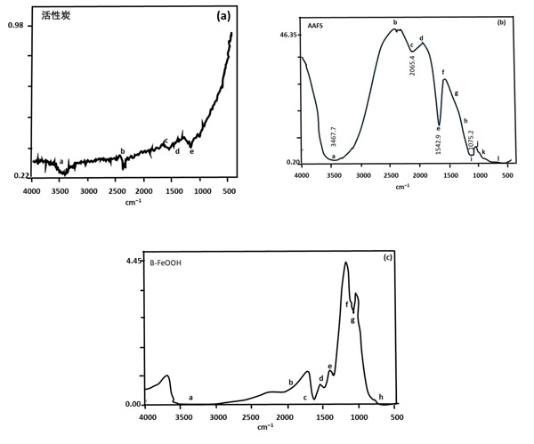 圖1:活性炭,AAFS和B-FeOOH的FTIR光譜。