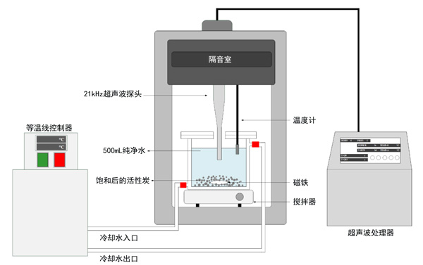 圖1:飽和活性炭超聲再生的實(shí)驗(yàn)裝置。