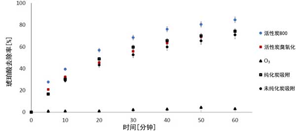圖1:活性炭800進(jìn)行琥珀酸臭氧化。