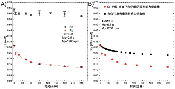 圖1:硒和錸吸附的動力學(xué)曲線。